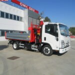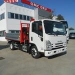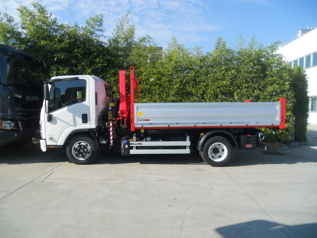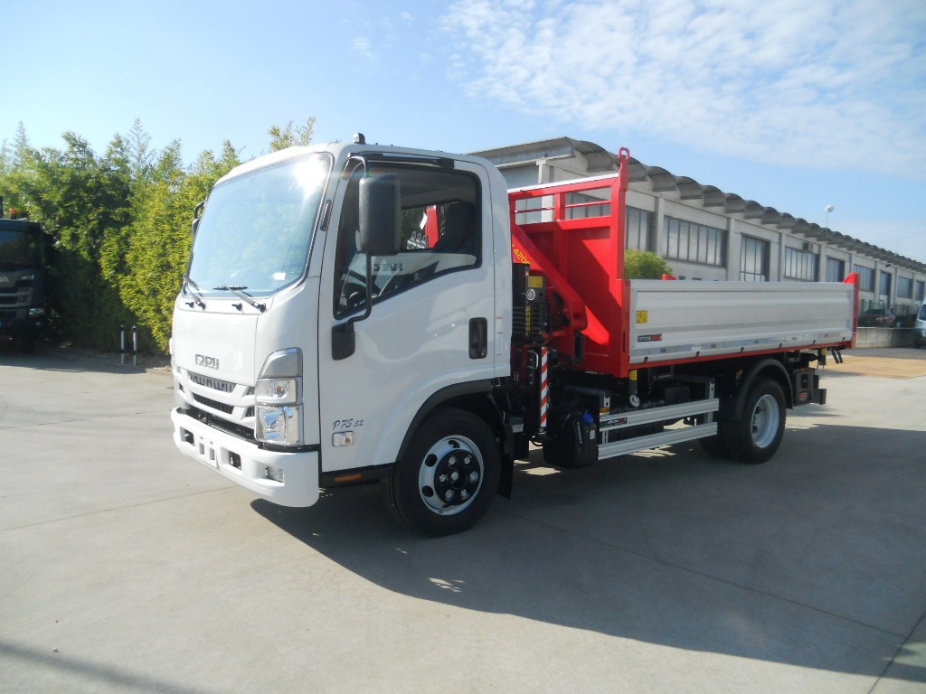 ISUZU P75 CON GRU PALFINGER PK4200C E CASSONE RIB.LE TRILAT.