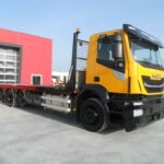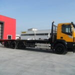• CASSONE A PIANALE X TRASPORTO VEICOLI LUNGHEZZA TOTALE MM 9.350 CON CODA DA MM 2.650 RECLINABILE IDRAULICAMENTE, LARGHEZZA MM 2.550 MISURE ESTERNE, RAMPA POSTERIORE ESTENSIBILE IDRAULICAMENTE DA MM 1.600, ALTEZZA UTILE PIANO DI CARICO IN  ORDINE DI MARCIA MM 1.150, COMANDATO DA TELECOMANDO, ARGANO IDRAULICO ANTERIORE AL CASSONE DA 8 TON.  IN TIRO DIRETTO