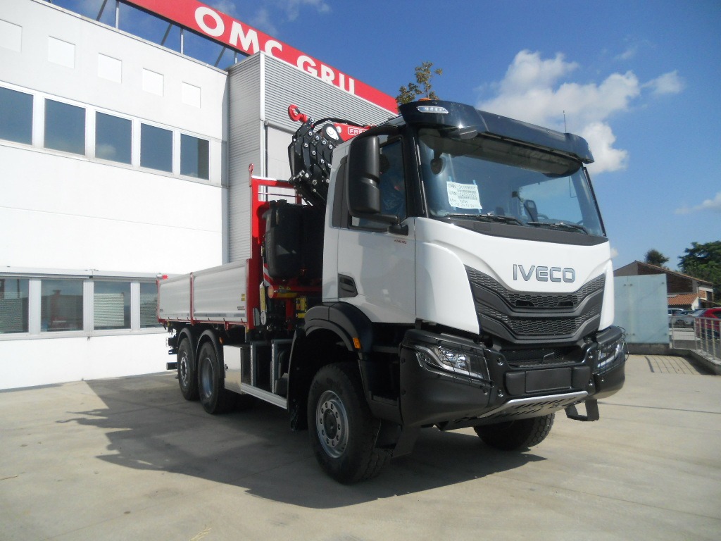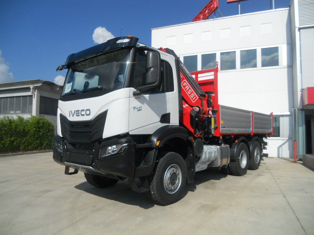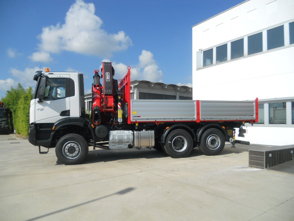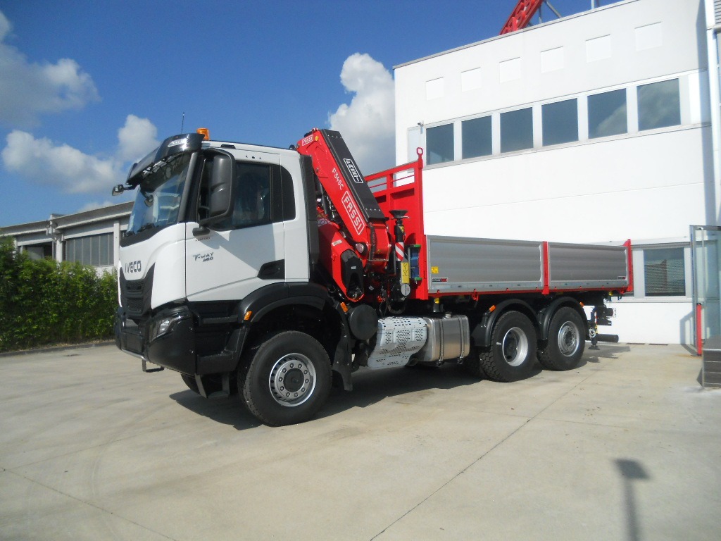 IVECO T-WAY AD260T46WY CON GRU FASSI F345BC.2.26 E CASSONE RIB.LE TRILATERALE